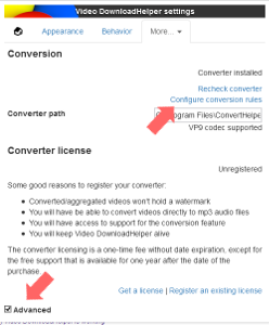 On some rate situations, after you installed the converter on your system, you may be required to go Video DownloadHelper settings, More > Conversion and click Recheck converter.