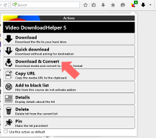 - Download & Converting: When Video DownloadHelper detects one or more videos on a Web page, it animates the icon. Clicking on this icon opens a panel that lists the available videos. Clicking on the + sign in a video entry opens the list of possible actions. One of them is Download & Convert. This means that the file you requested will be first first downloaded then converted to another format automatically. If you often use this Download & Convert action, you may take benefit of checking the box Use this action by default at the bottom of the actions panel. Next time, you won't have to click on the + sign, but anywhere on the entry to start the Download & Convert action. Note that there is another way to perform automatic conversion using conversion rules. This is explained below in this document.