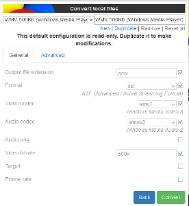 The output presets that come with Video DownloadHelper cannot be changed in the interface. If you want to modify an existing preset, select it from the dropdown list at the top left and click Duplicate. This will make a copy that you will be able to modify at your convenience.